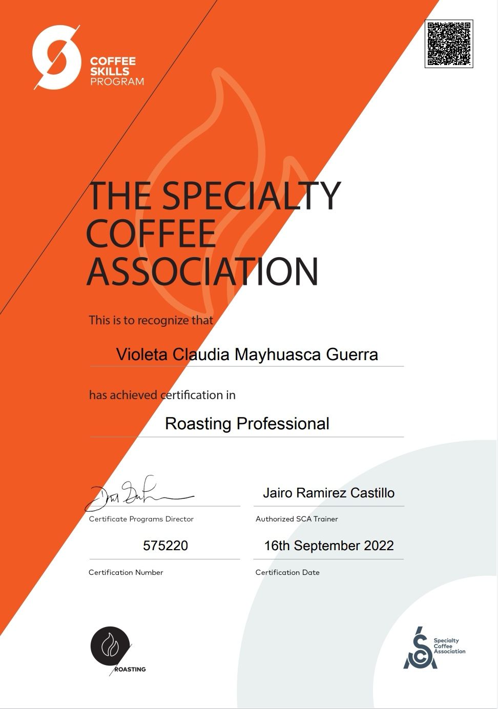 Actualmente el Maestro Tostador de VIOLET CAFE LAB TOSTADURIA, gracias a Dios culmine todas mis certificaciones SCA en tueste; para llevar de manera Profesional el tostado en Perú, aquí un breve resumen de quien soy !